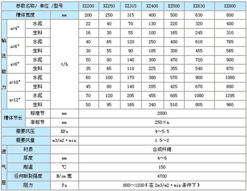 空氣輸送斜槽技術(shù)參數(shù)